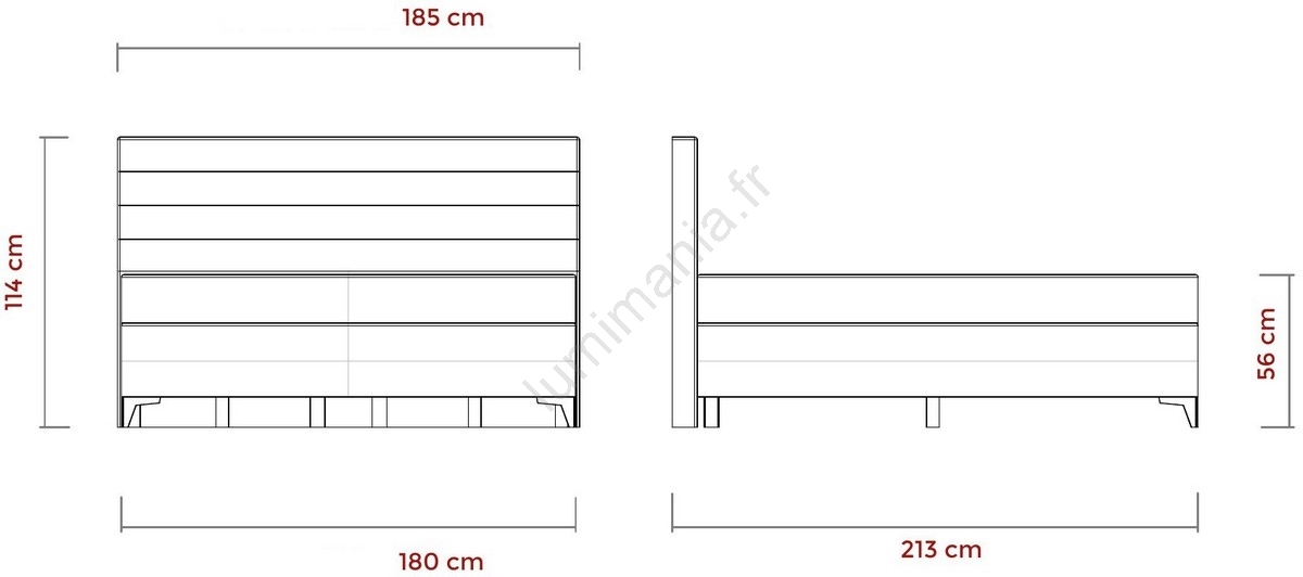 • Ce lit élégant, habillé d'un revêtement discret chiné, séduit par son design minimaliste, sa structure aérienne et son capitonnage horizontal prononcé de la tête de lit.
