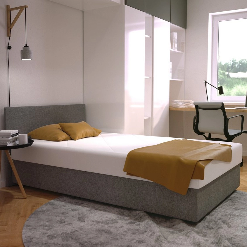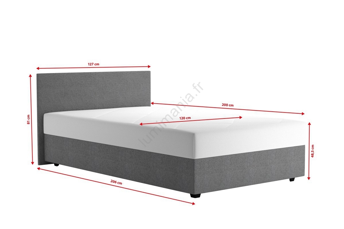 • Lit tapissé avec matelas, doté d'une tête de lit élégante et minimaliste.