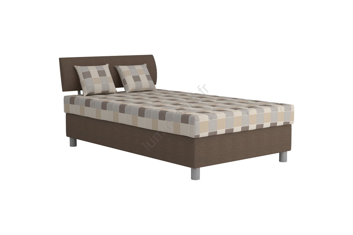Lit tapissé GEORGE 120 x 200 cm avec coffre de rangement et matelas, marron
