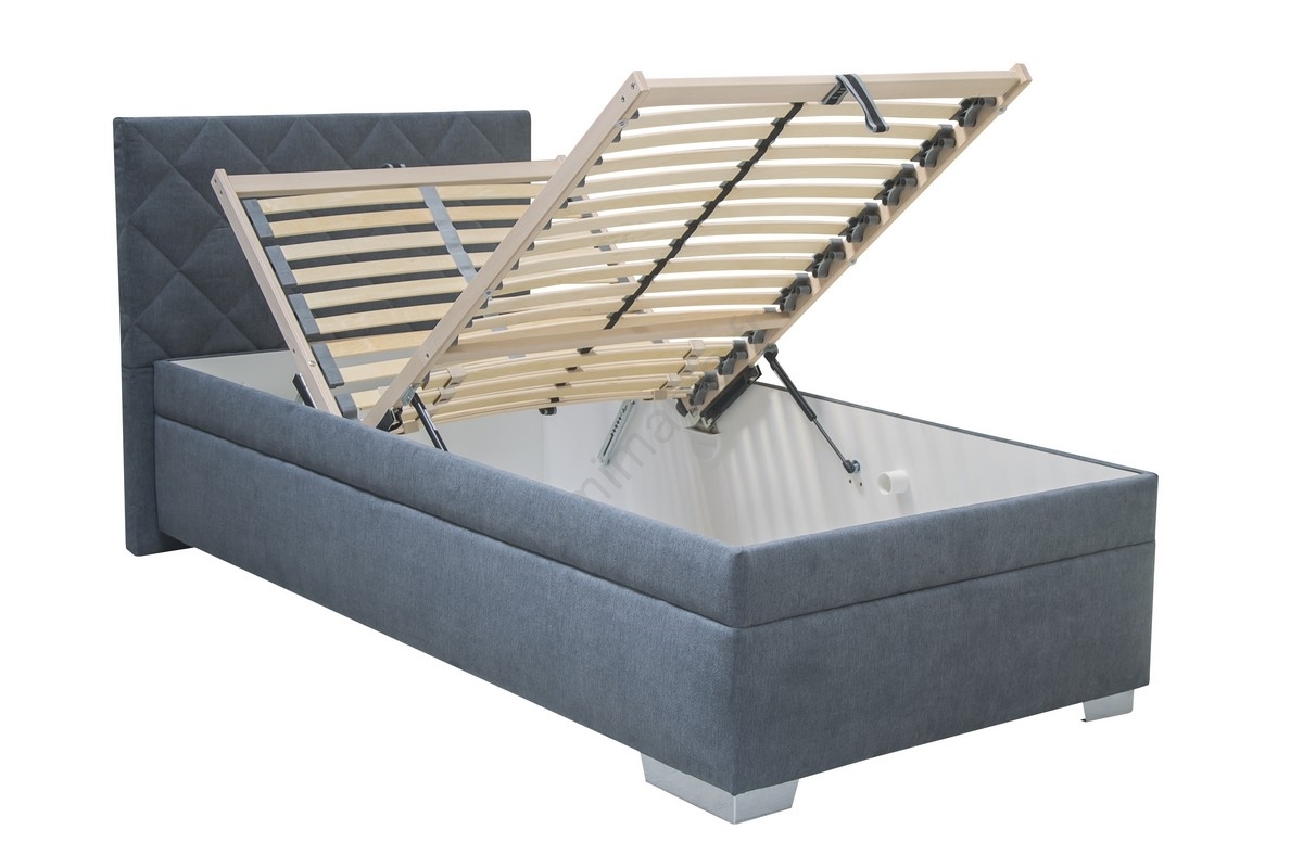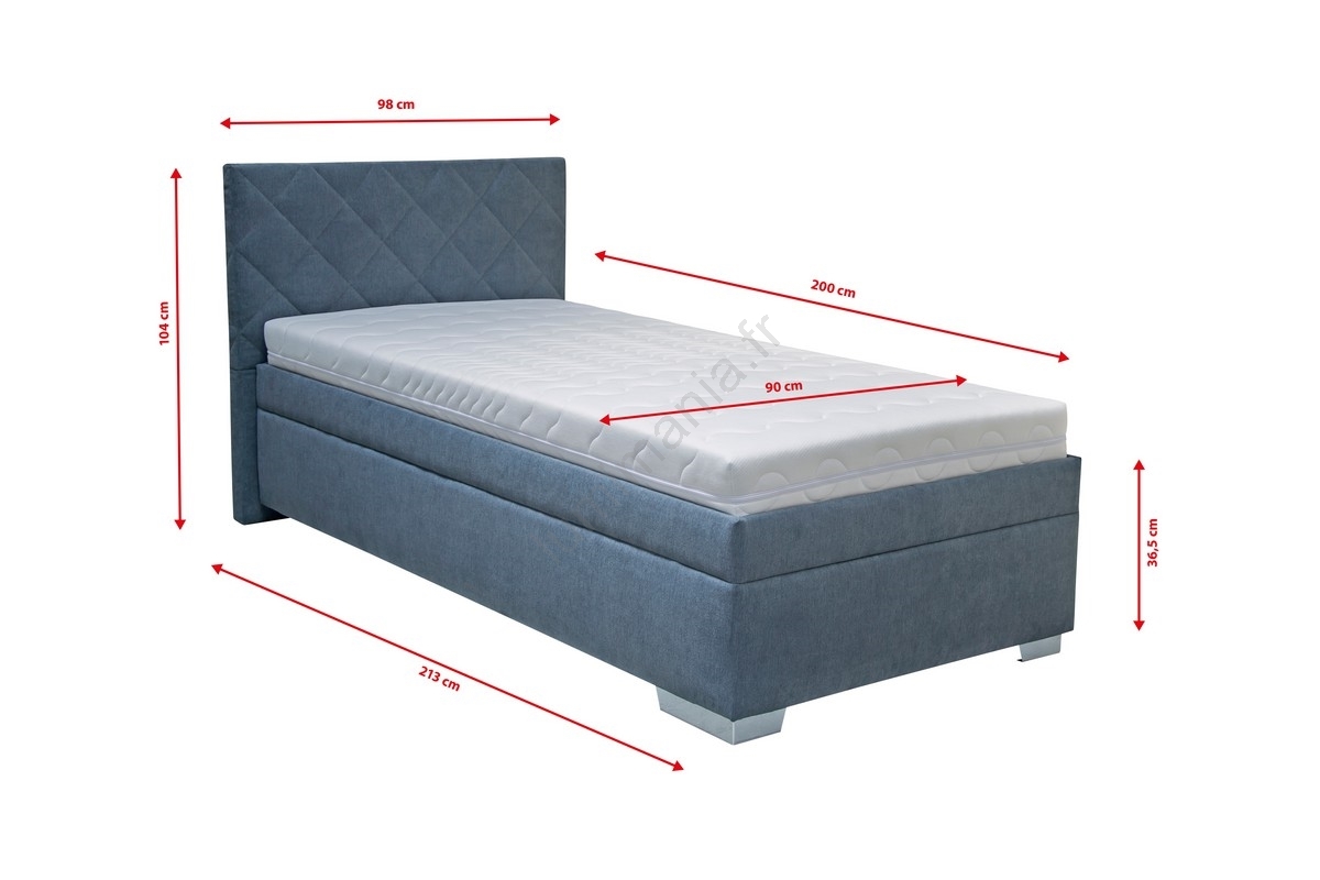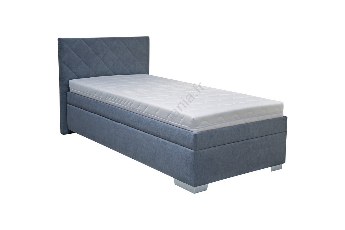 Lit tapissé LANA 90x200 cm avec coffre de rangement et matelas, bleu