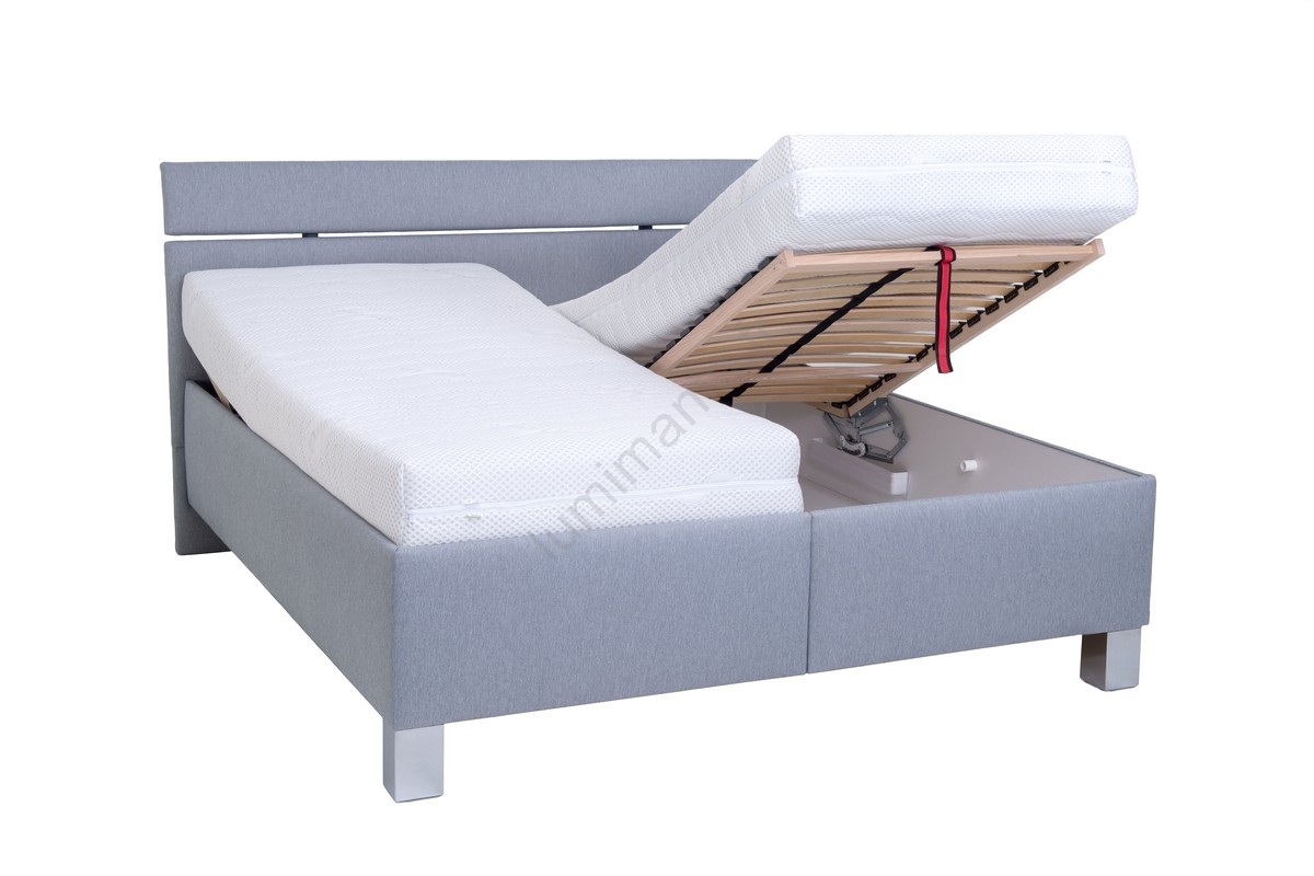 • Lit tapissé ALIS 180x200 cm avec coffre de rangement, sans matelas, gris clair