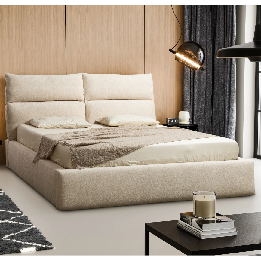Lit tapissé BASIL 160x200 cm, sans matelas, beige