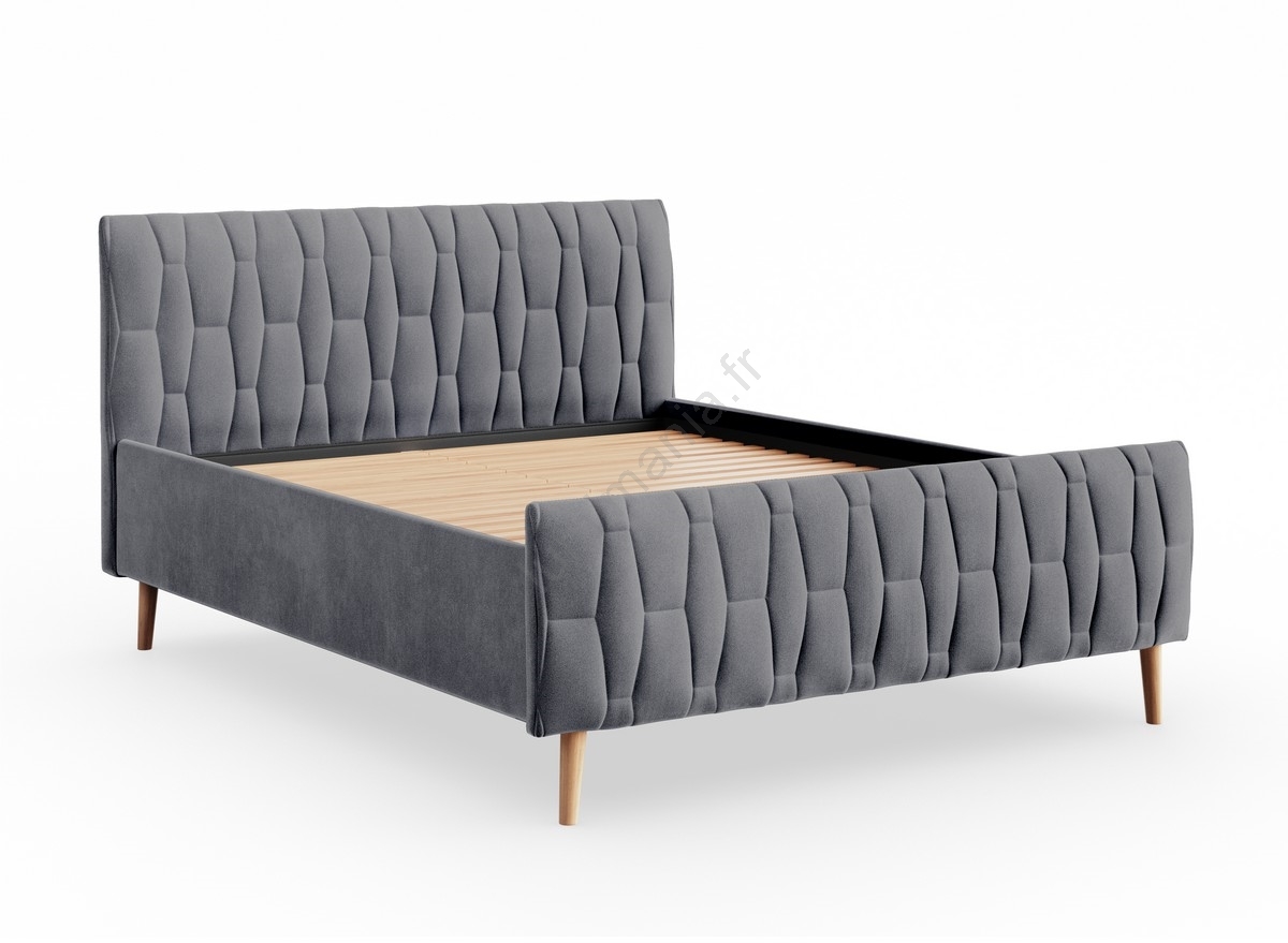 Lit tapissé FLORA 180 x 200 cm sans matelas, gris