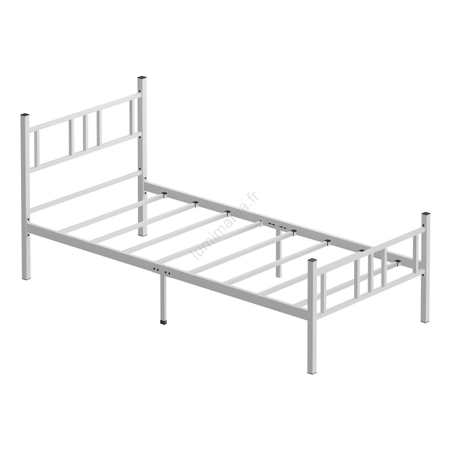 Lit simple en métal PIRON 90 x 200 cm, blanc — charge maximale 120 kg