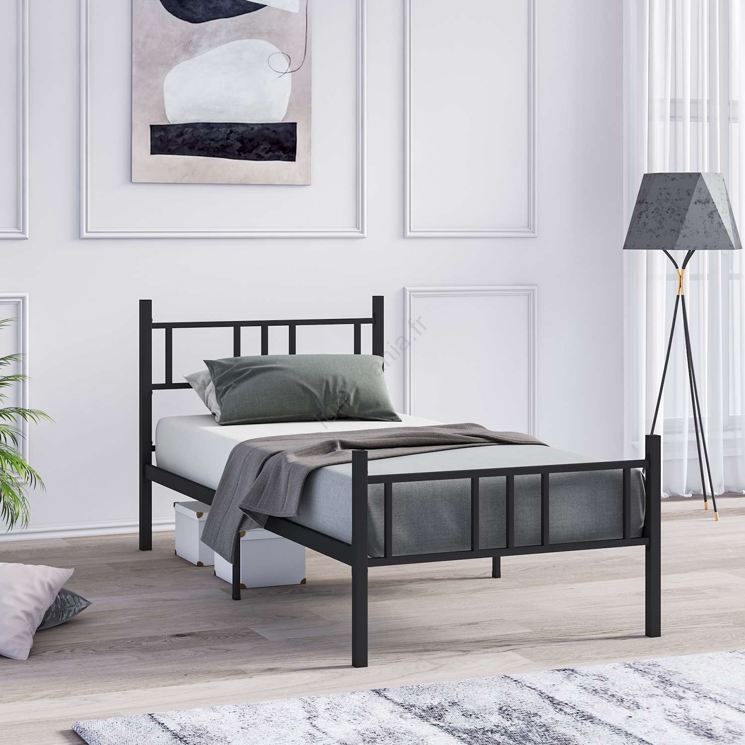 Lit simple en métal PIRON 90x200 cm noir, capacité de charge 120 kg