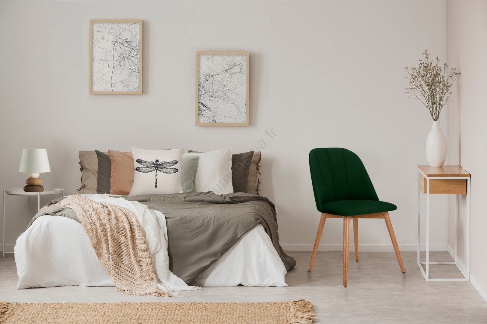 Chaise de repas BAKERI 86x48 cm vert foncé/chêne clair