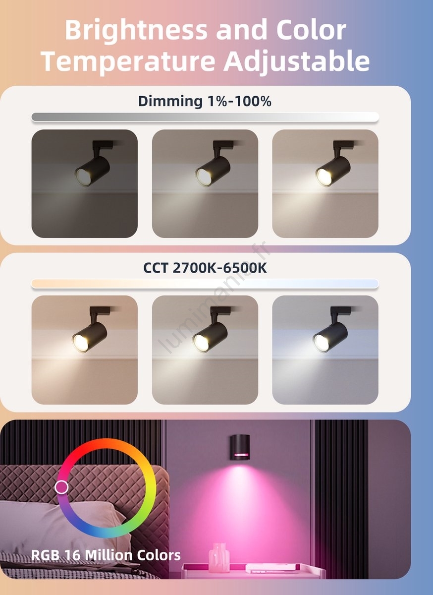 • Réglage de la couleur de la lumière du blanc chaud au blanc froid.