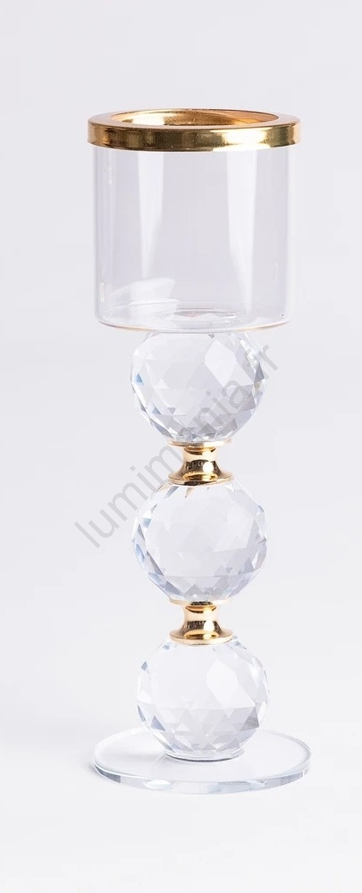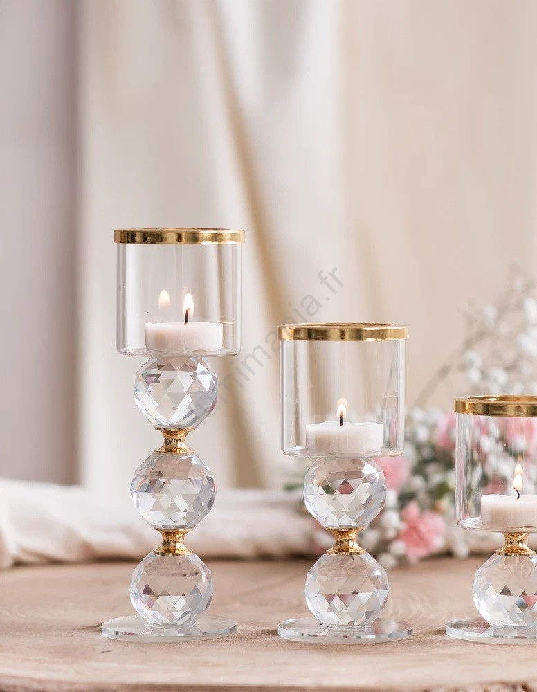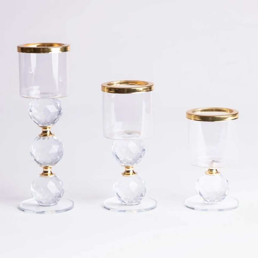 • Ensemble élégant de trois bougeoirs de couleur dorée.