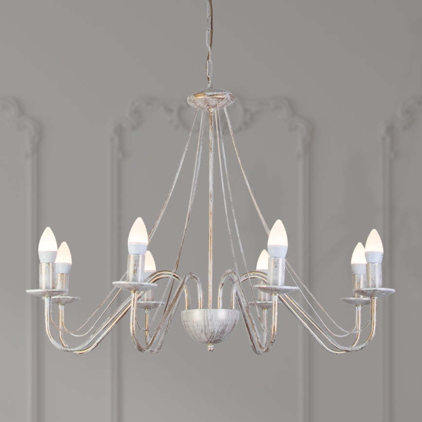Lustre à chaîne MALBO 8xE14/10W/230V blanc/doré/patiné