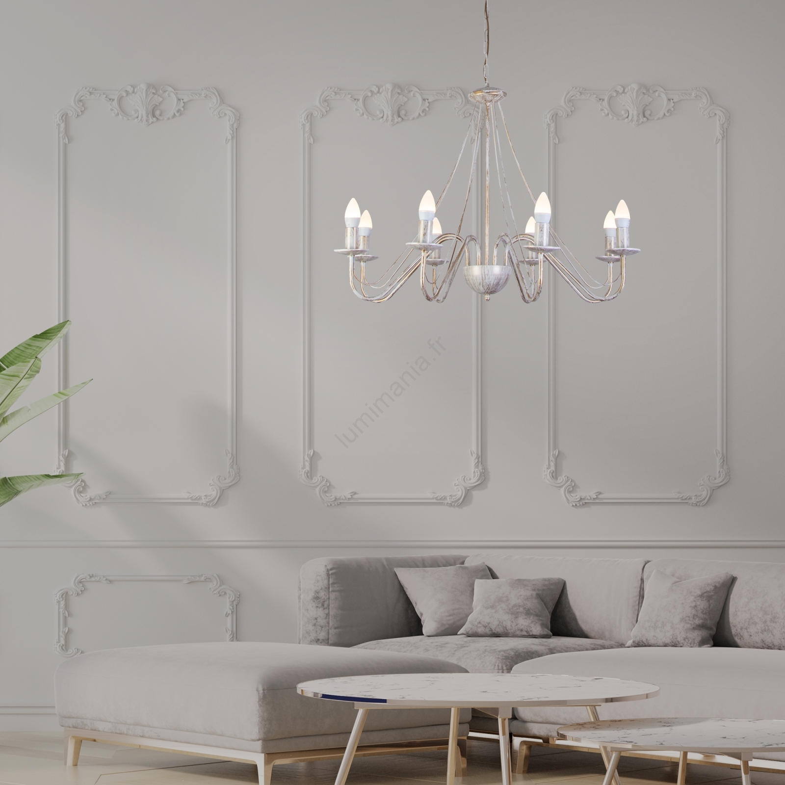 • Lustre à chaîne MALBO 8xE14/10W/230V blanc/doré/patiné