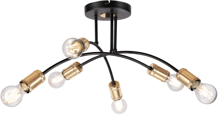 Lustre à montage en saillie ANYA 6xE27/15W/230V noir/doré caractérise un design agréable et fonctionnel.  Une ampoule à culot E27 convient pour ce luminaire. Ici, vous pouvez acheter d'autres ampoules à des prix avantageux. Vous aurez un ajout intéressant dans votre intérieur.