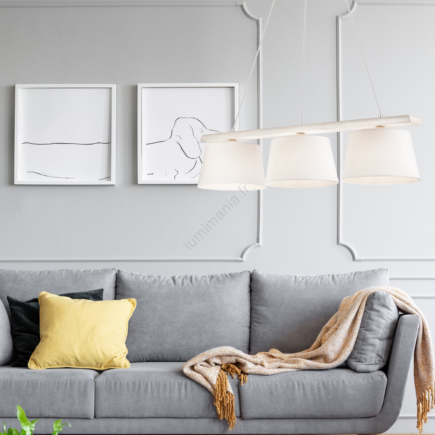 • Suspension sur câble AIDA, 3x E27 (max. 60 W), 230 V, Ø 25 cm, finition chêne