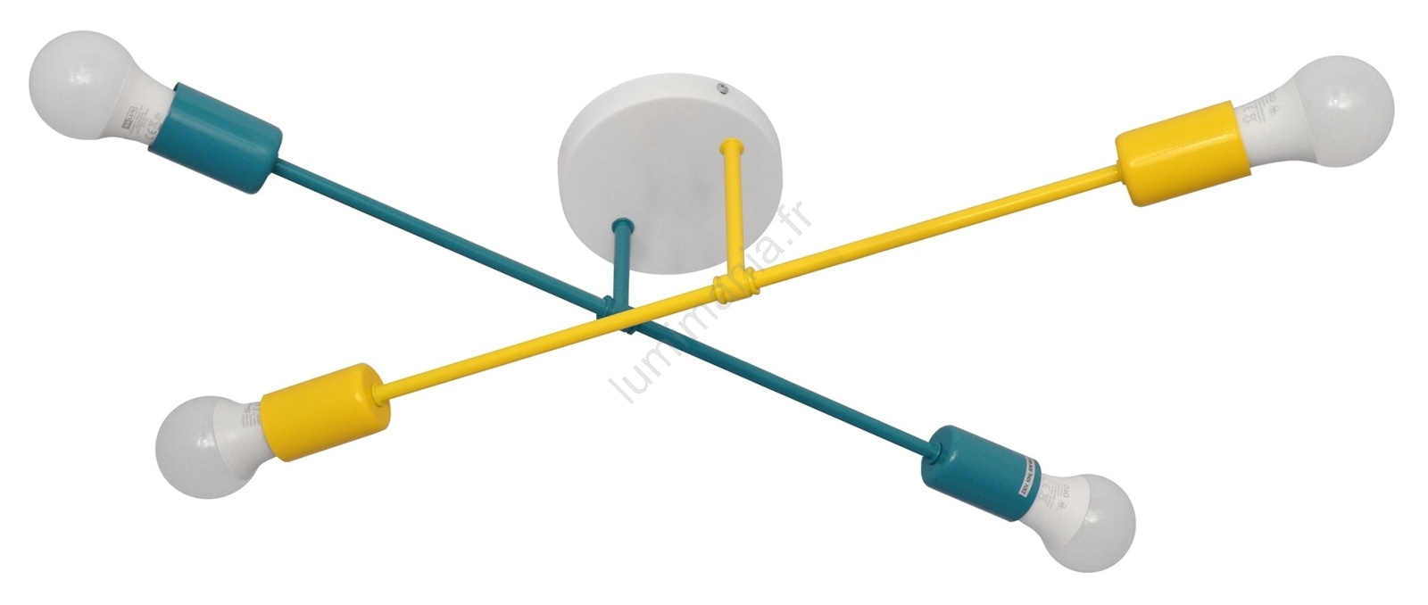 Lustre monté en surface CAMBRIDGE 4xE27/20W/230V bleu/jaune caractérise un design agréable et fonctionnel.  Une ampoule à culot E27 convient pour ce luminaire. Ici, vous pouvez acheter d'autres ampoules à des prix avantageux. Vous aurez un ajout intéressant dans votre intérieur.