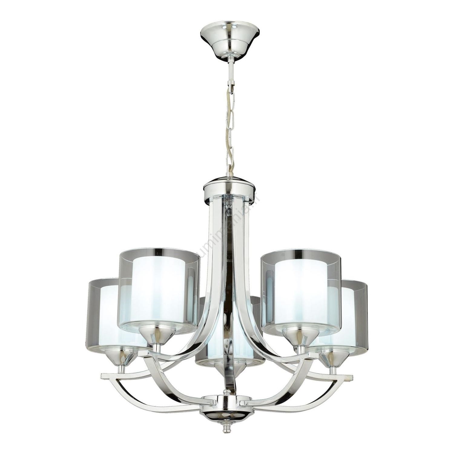 • Lustre suspendu à chaîne NOVARA 5xE27/40W/230V, finition chrome brillant