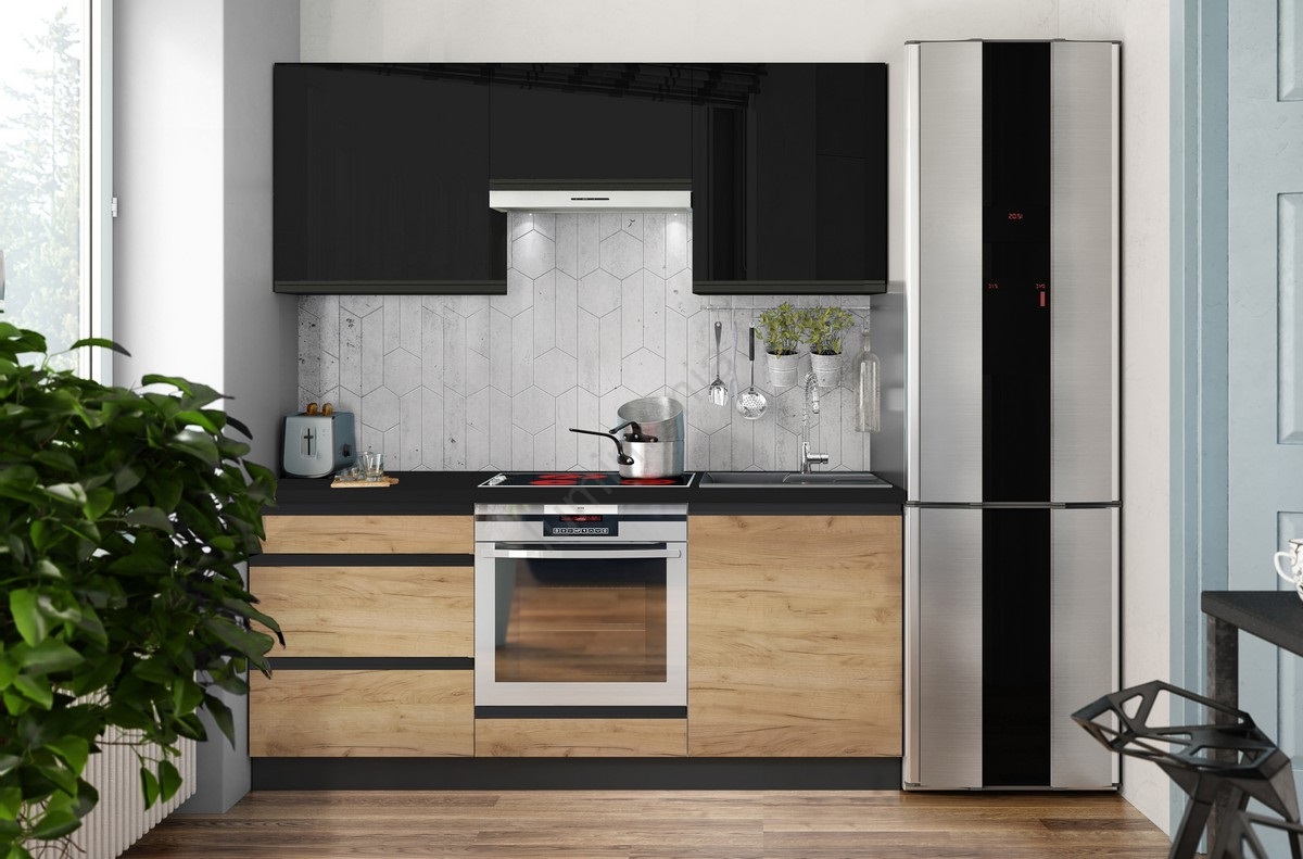 Meuble de cuisine MARINA 180 cm, chêne craft / noir laqué