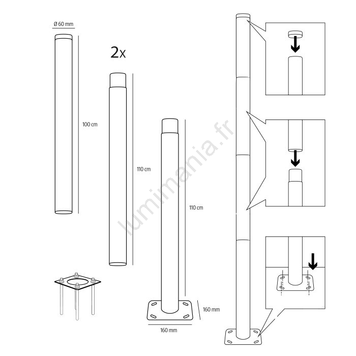 Mât métallique BASE 4 m pour éclairage extérieur, Ø 60 mm, noir