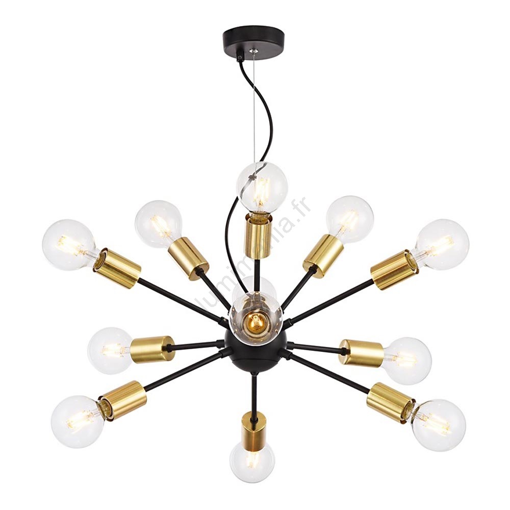 Maytoni T546PL-12B - Suspension JACKSON sur câble 12xE27/7W/230V noir/doré caractérise un design agréable et fonctionnel.  Une ampoule à culot E27 convient pour ce luminaire. Ici, vous pouvez acheter d'autres ampoules à des prix avantageux. Vous aurez un ajout intéressant dans votre intérieur.