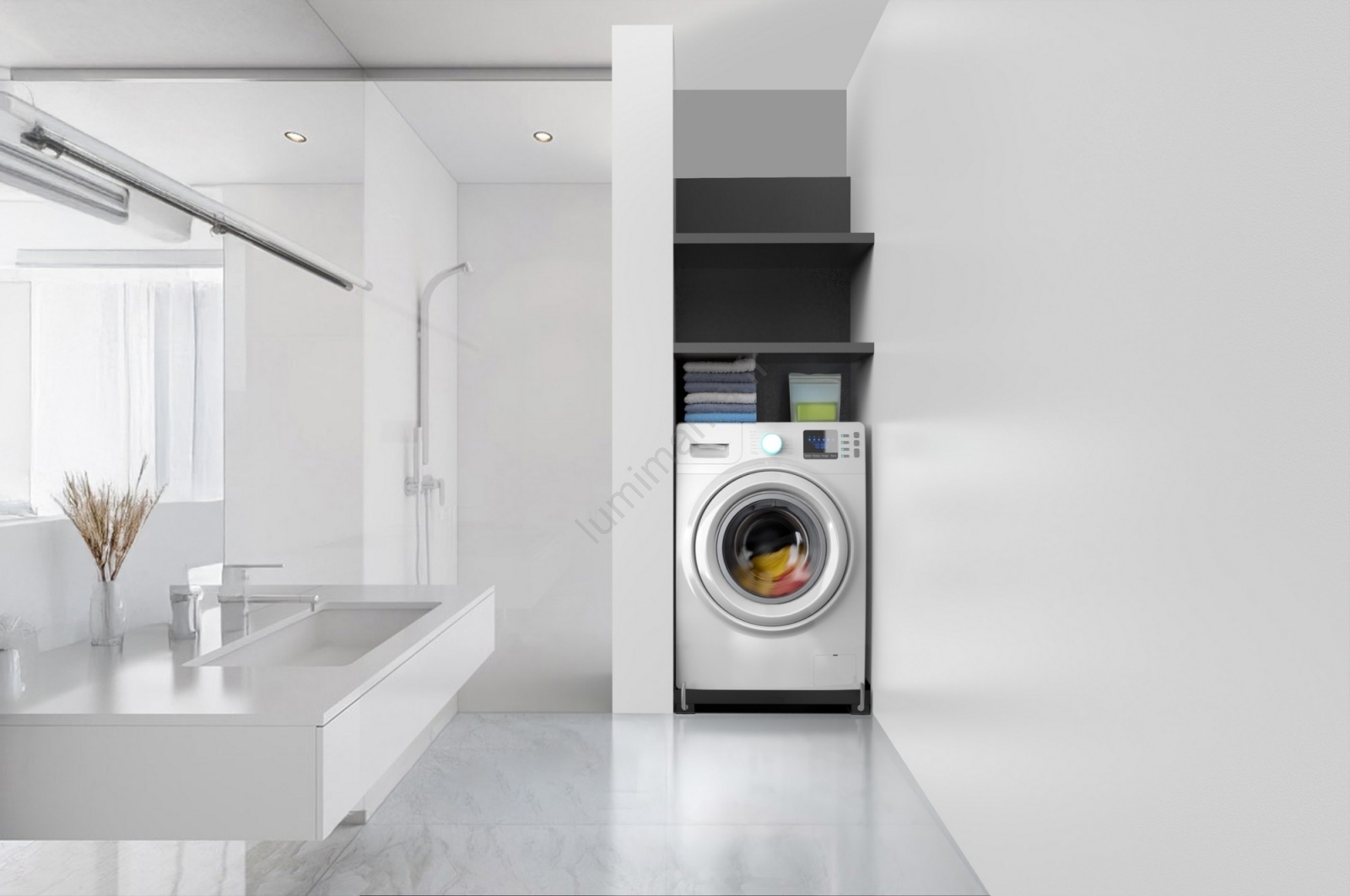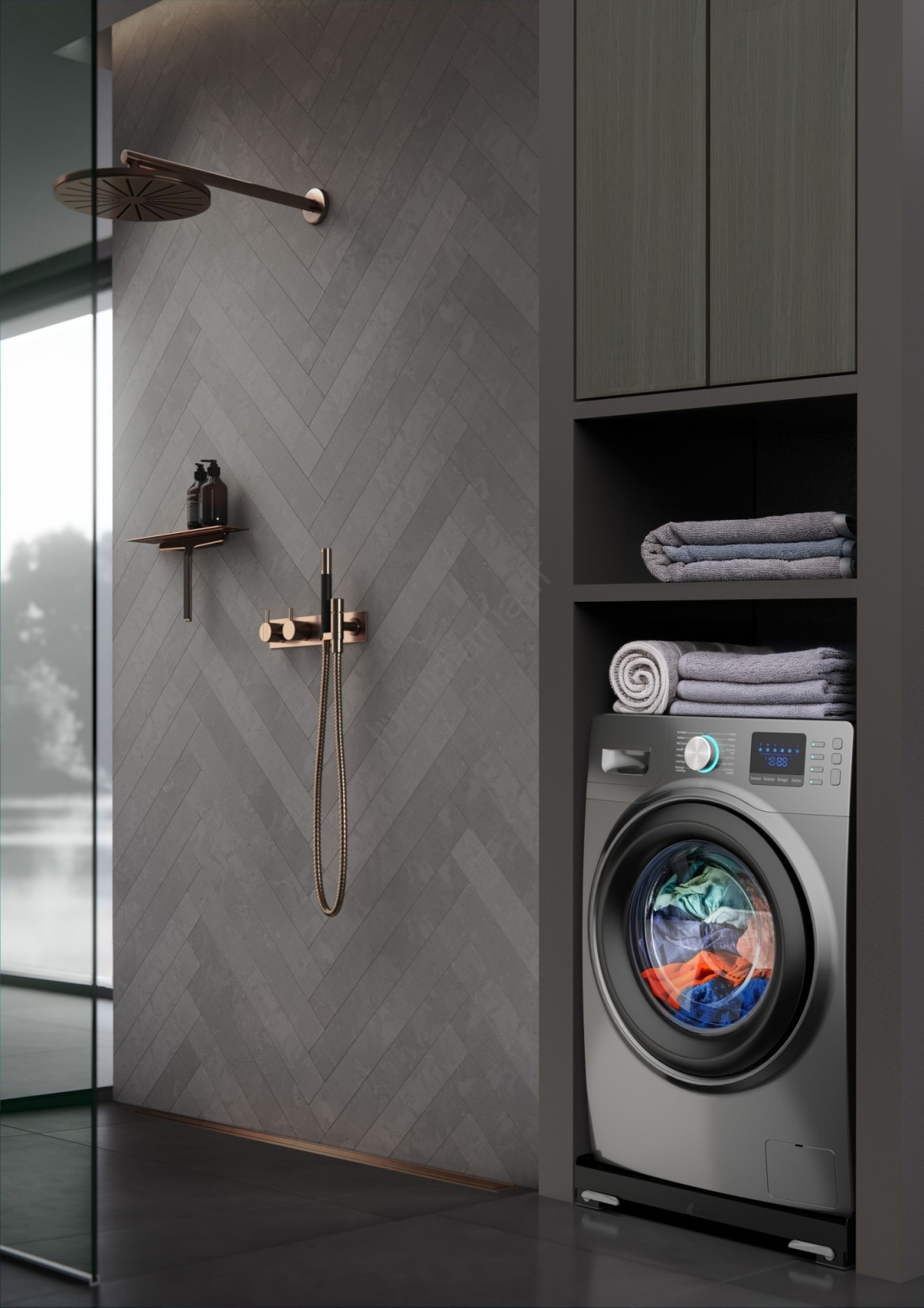 • Socle mobile compact conçu pour les lave-linge et sèche-linge „Slim“ d'une profondeur allant jusqu'à 47 cm.