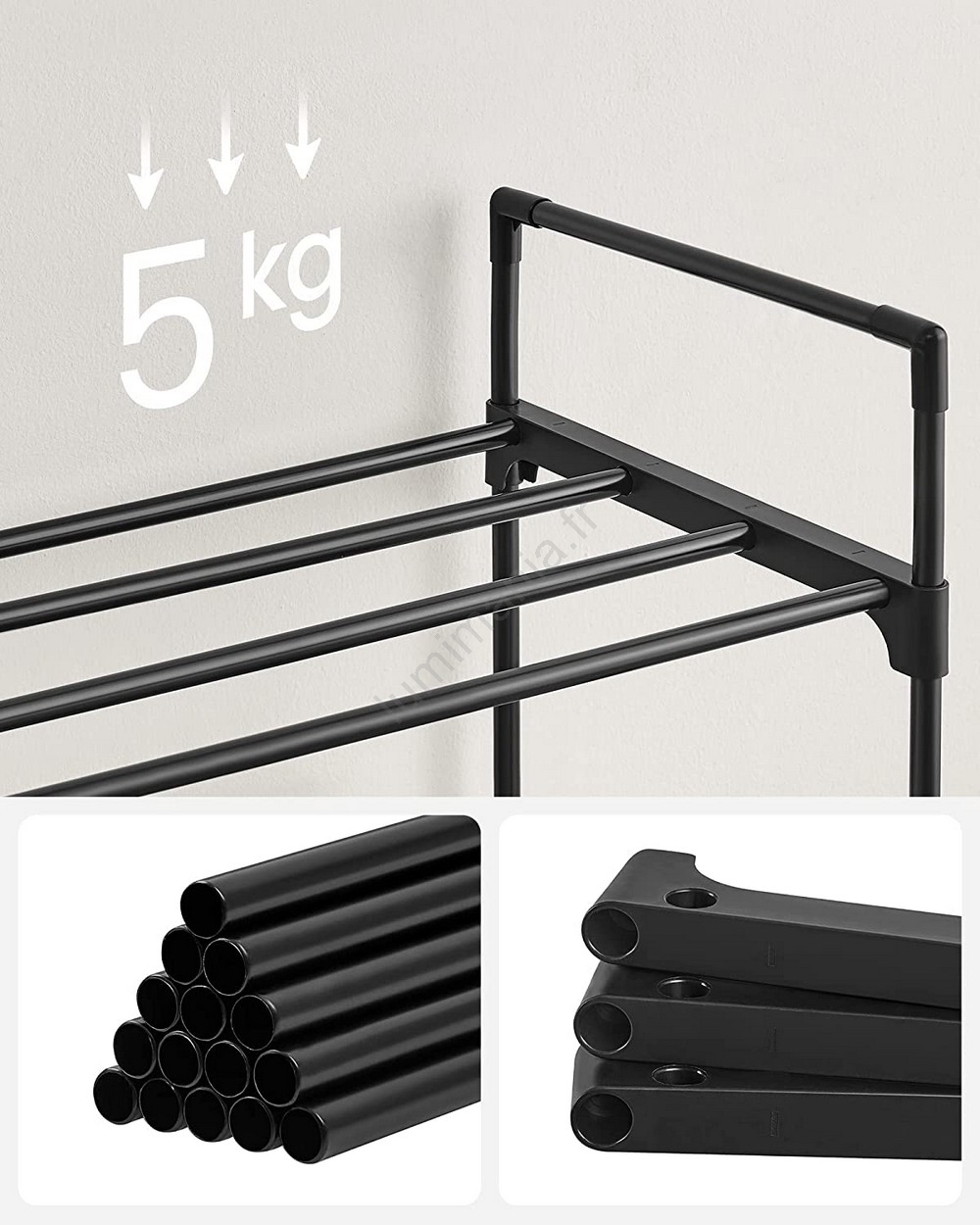 • Chaque niveau supporte jusqu'à 5 kg, offrant un maintien solide à vos chaussures.