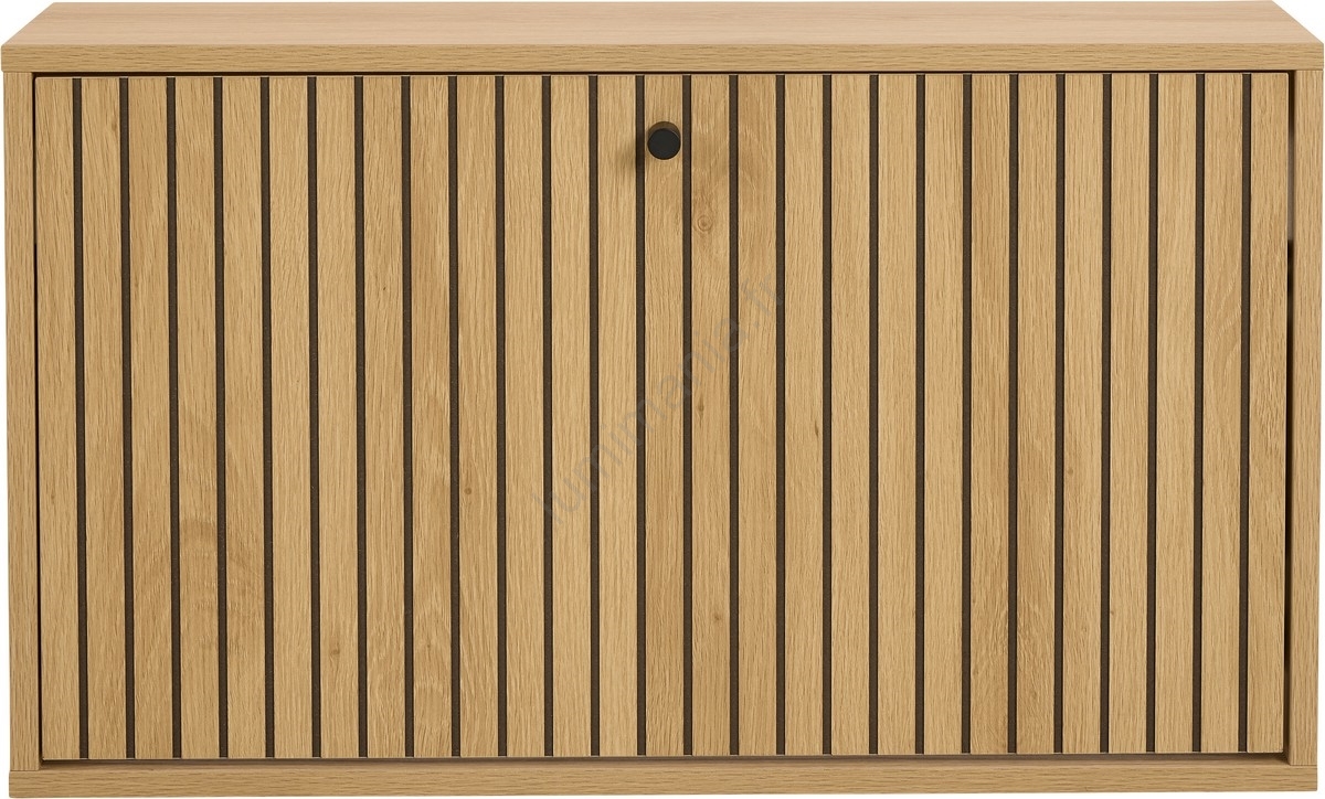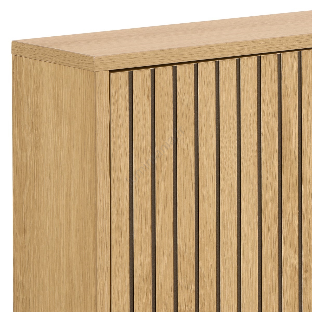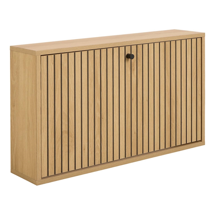 • Meuble à chaussures aspect chêne avec façade à lames apportant style et praticité à votre entrée.