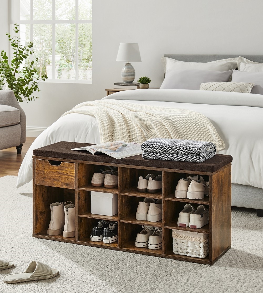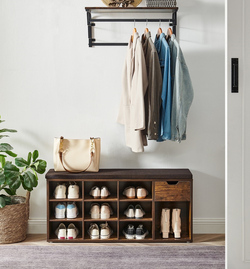 • Le coussin moelleux vous permet de vous asseoir confortablement pour enfiler ou retirer vos chaussures.