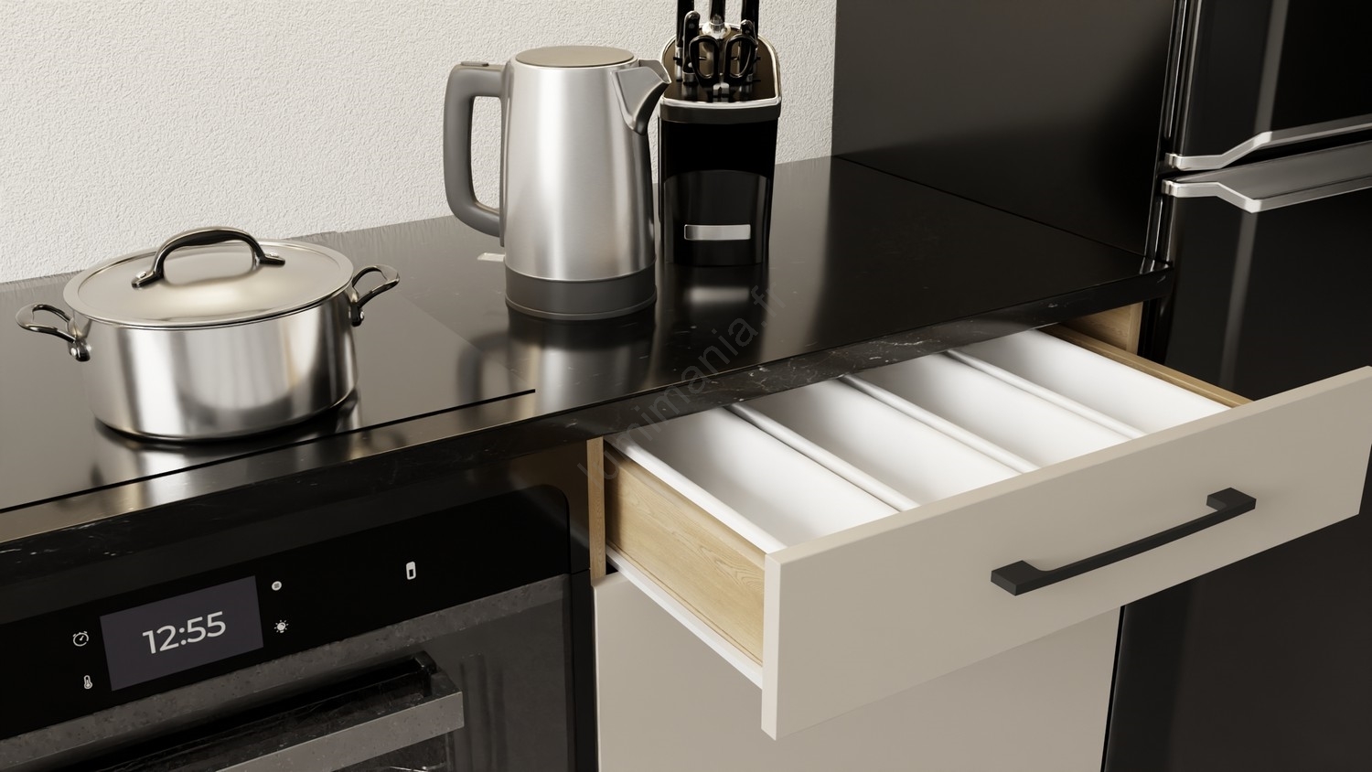 • L'agencement des meubles est modulaire, vous pouvez adapter la cuisine selon vos propres préférences.