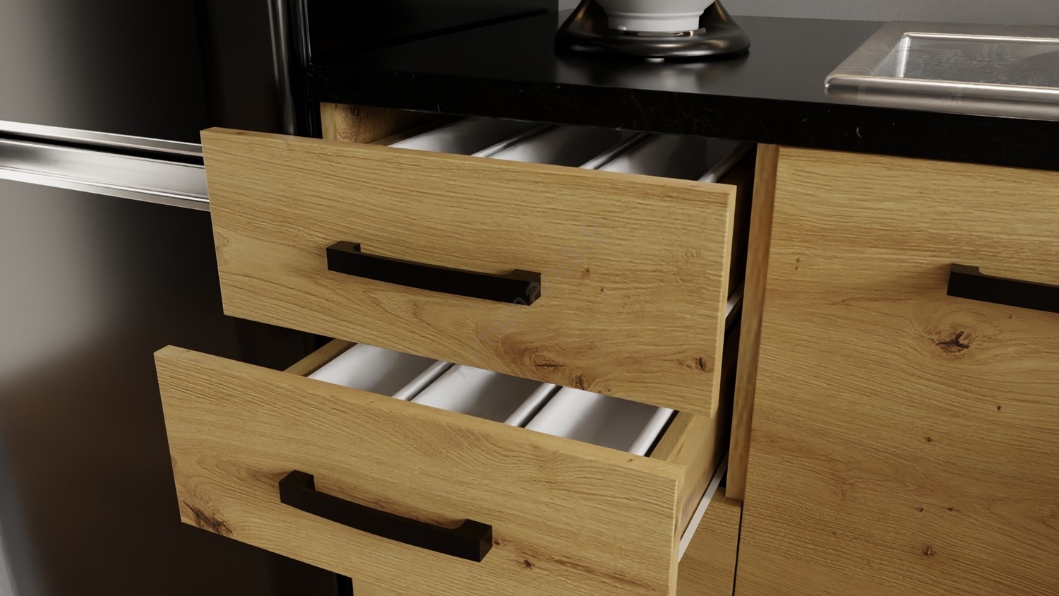 • L'agencement des placards est modulaire, vous pouvez configurer la cuisine selon vos préférences.