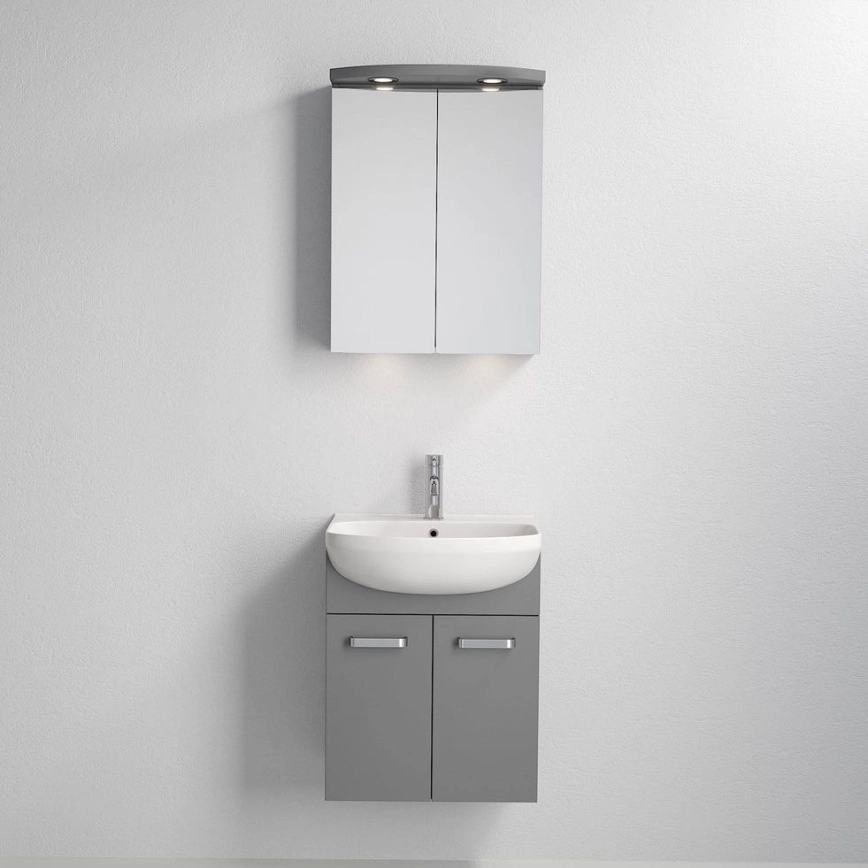 Meuble de salle de bains avec lavabo Vang + armoire-miroir LED 230 V IP44 gris
