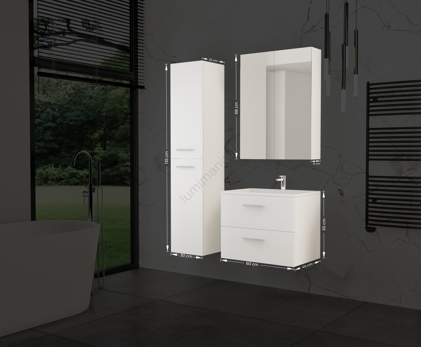 • Meuble de salle de bains avec lavabo KATE + armoire-miroir + meuble mural blanc