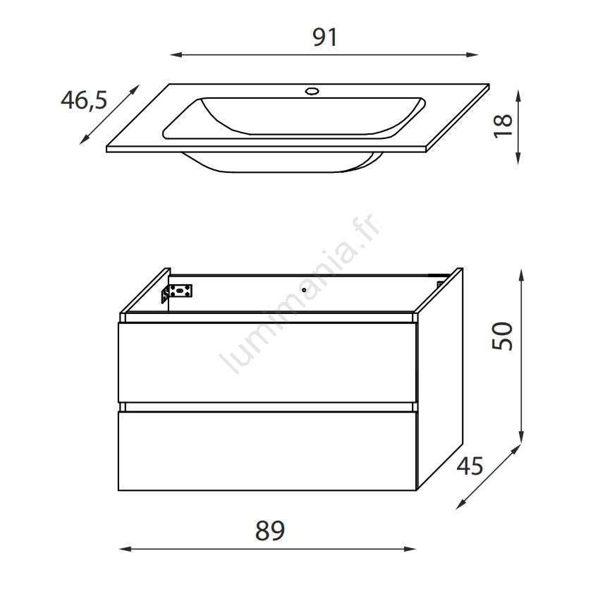 • Ce meuble est livré avec un lavabo en céramique.