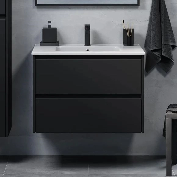 • Meuble de salle de bains avec lavabo MOLDE 80 cm noir
