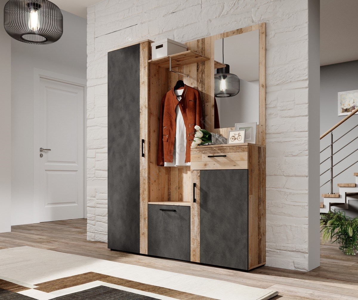 Meuble d'entrée avec miroir NOLAN, marron/graphite