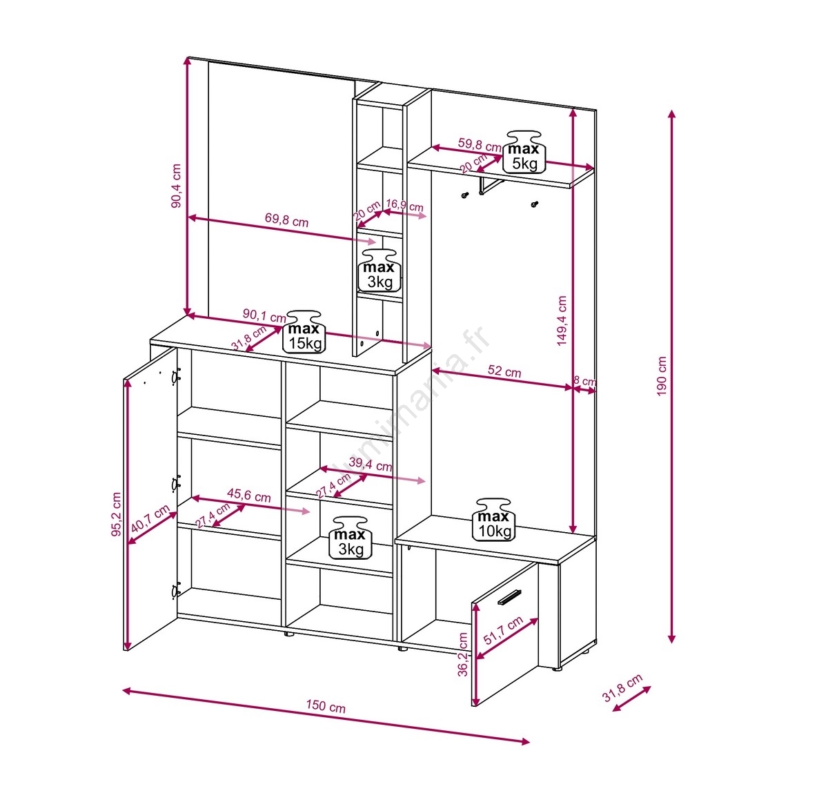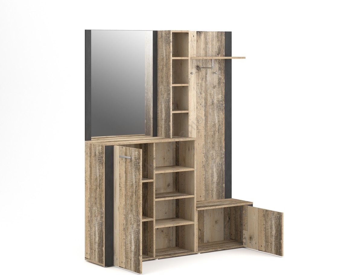 • Des étagères ouvertes, des crochets, une tringle à manteaux et un grand miroir offrent exactement ce dont vous avez besoin.