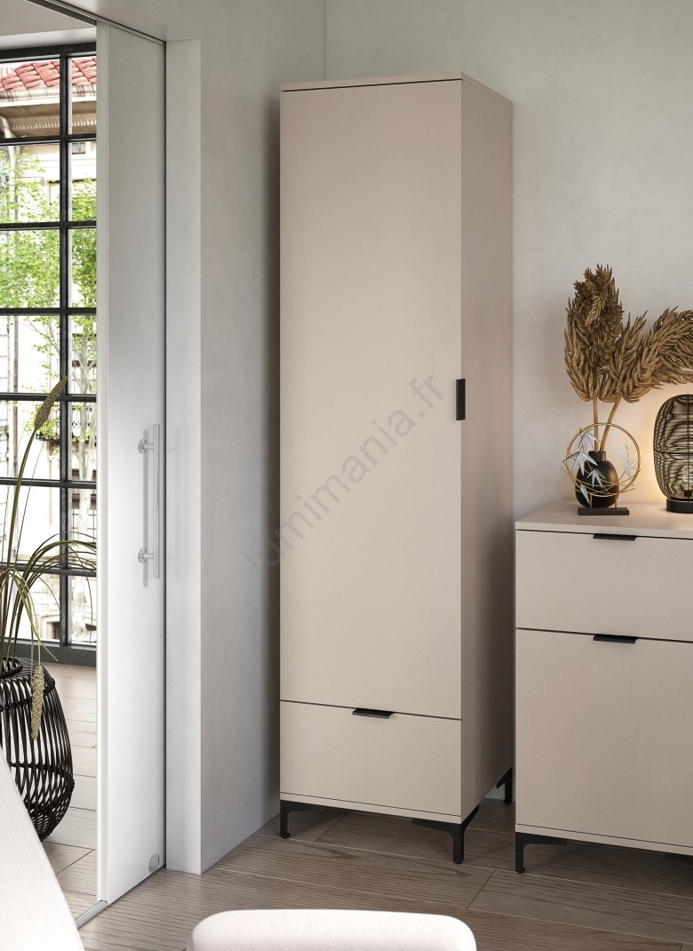 • Le meuble est conçu dans un style loft et se distingue par des pieds et des poignées en métal, qui lui confèrent une touche industrielle supplémentaire.