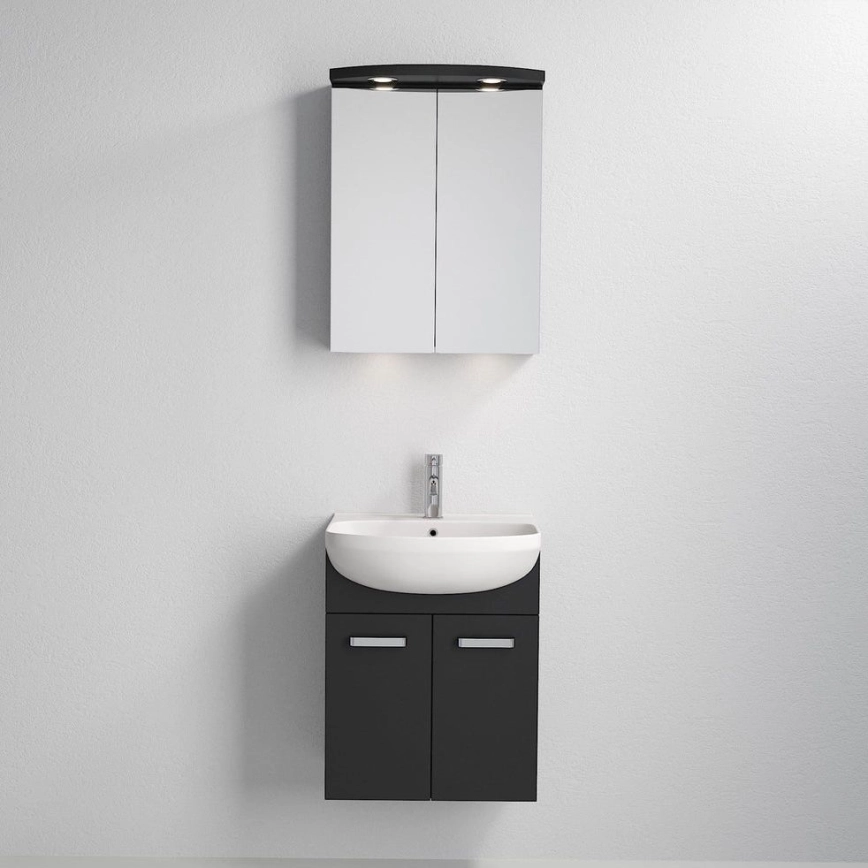 • Meuble de salle de bains avec lavabo Vang + armoire-miroir LED 230 V IP44 gris