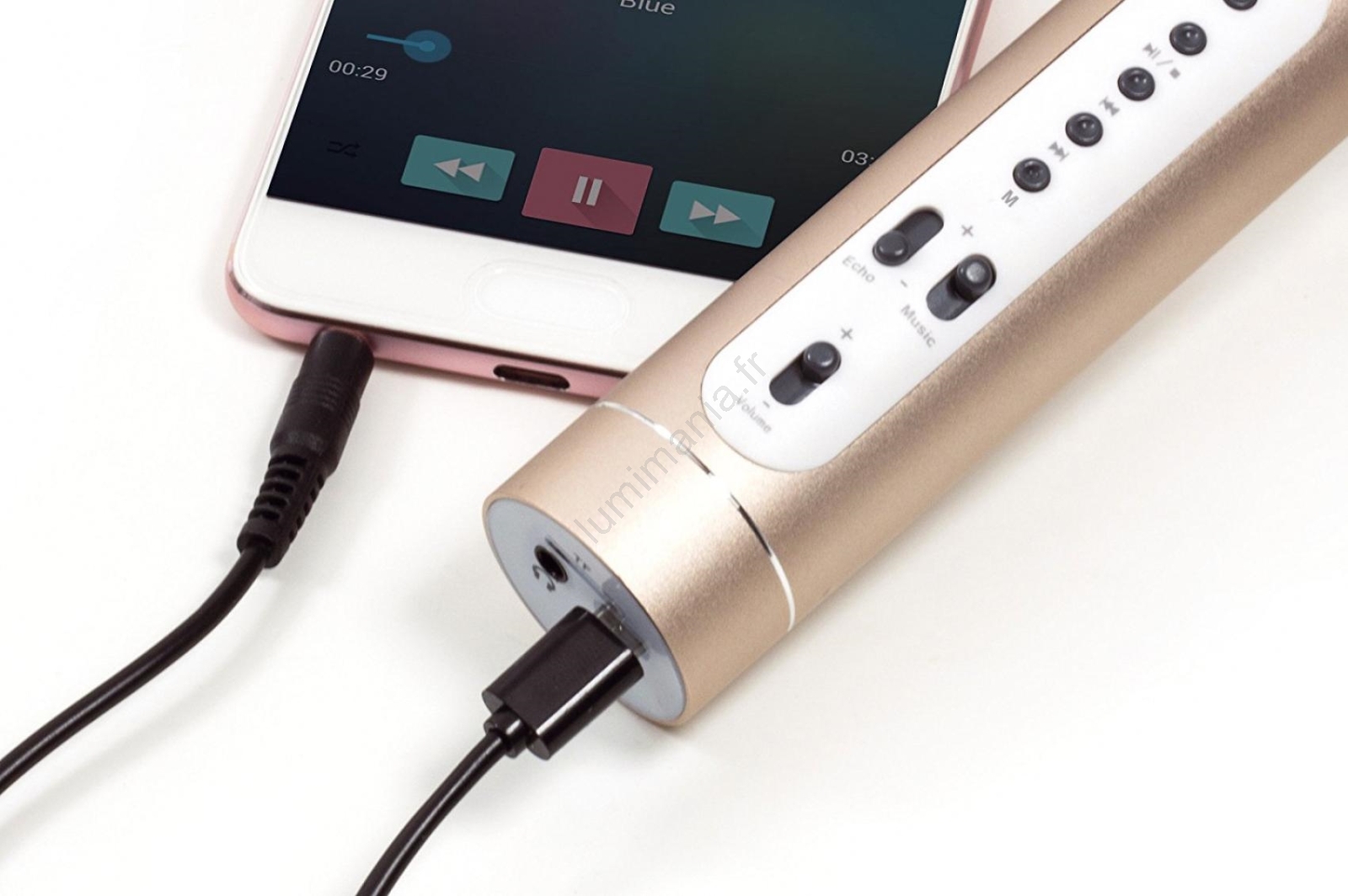 • Contenu de l'emballage : microphone karaoké, câble de charge USB vers Micro USB, câble audio, mode d'emploi.