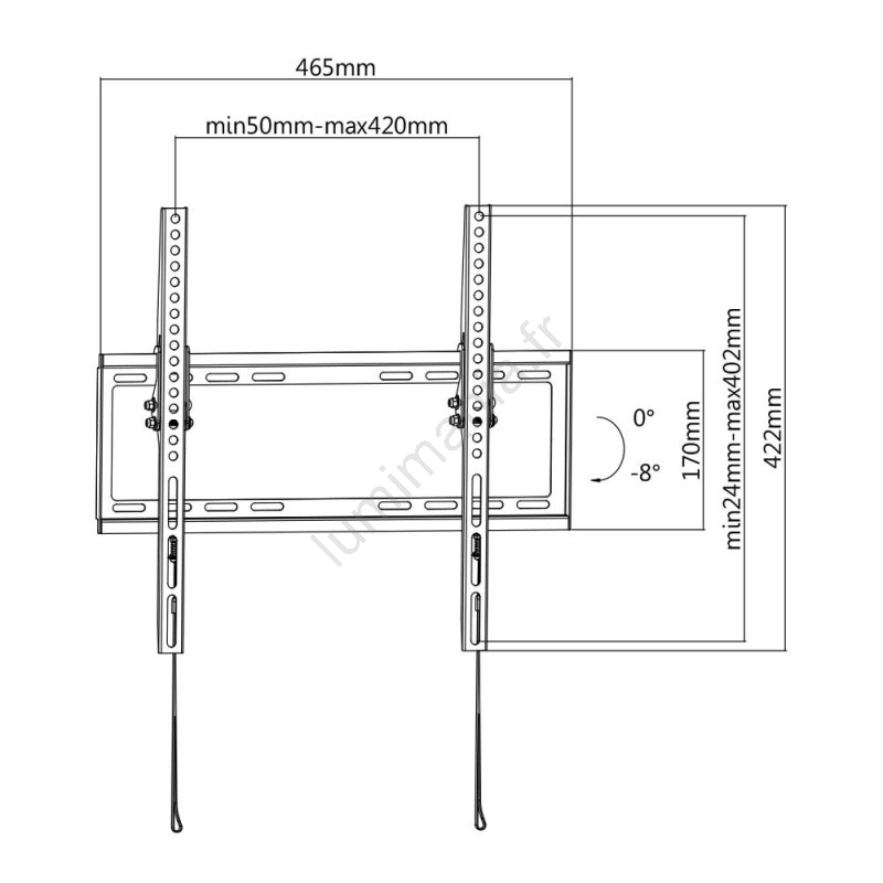 • Possibilité d'incliner la télévision de 0° à -8°.