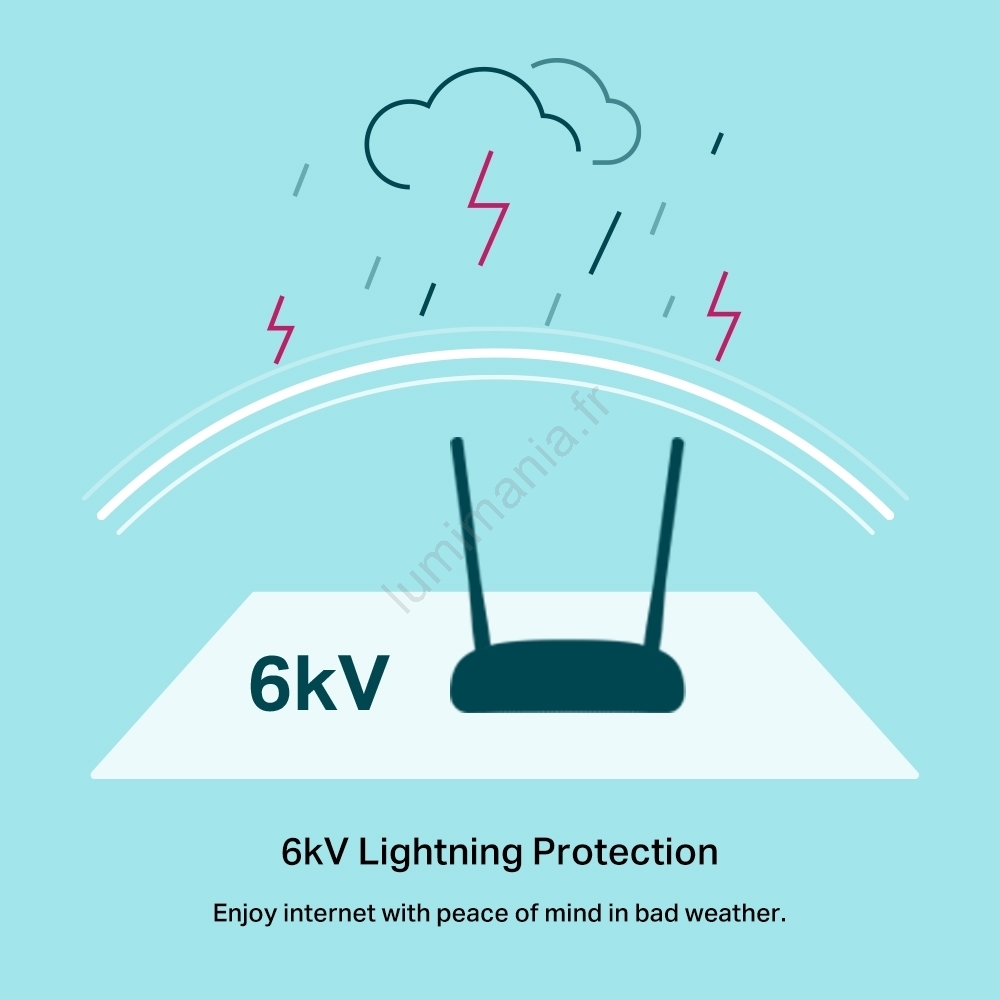 • Il prend en charge la norme Wi‑Fi 4 sur la bande 2,4 GHz avec un débit sans fil pouvant atteindre 300 Mb/s, idéal pour la navigation quotidienne, le streaming et le réseau domestique.