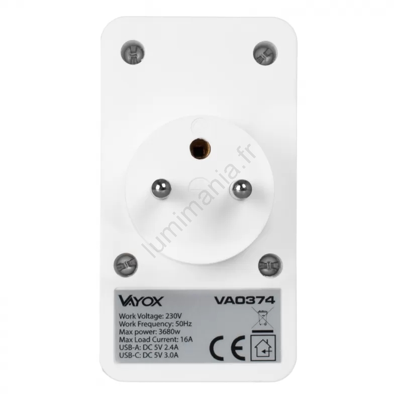 • Bloc multiprise 2 prises secteur + 2x USB A + 2x USB-C.