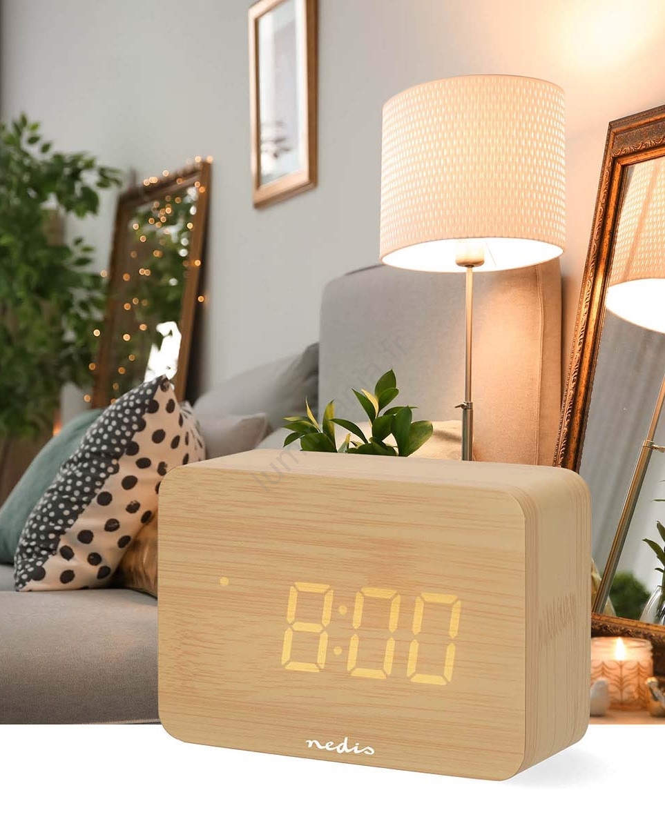Réveil numérique à écran LED avec thermomètre, 5V/3xAAA, finition bois