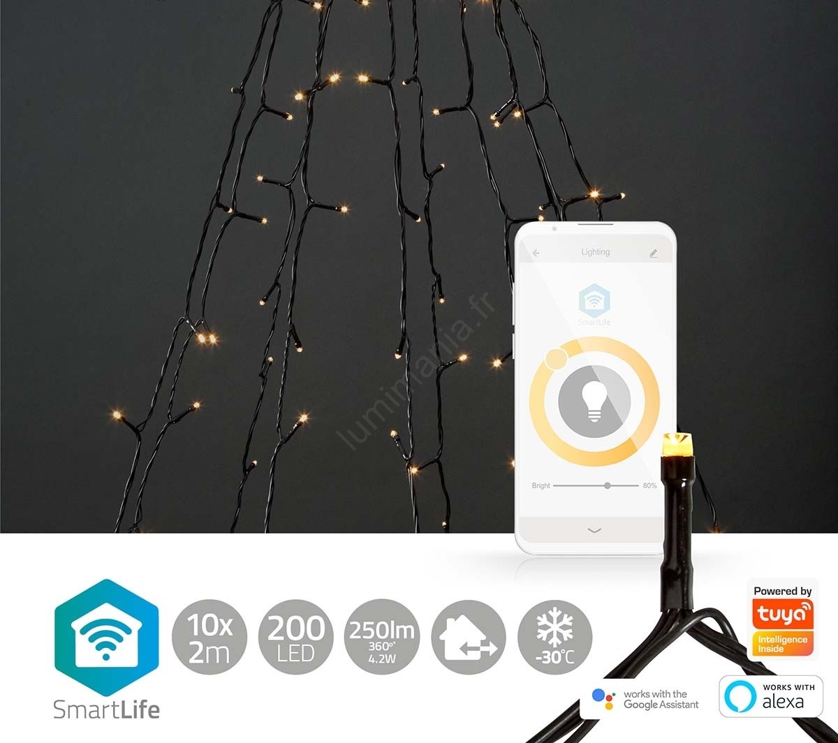 Rideau de Noël extérieur 200xLED/8 fonctions 10x2m IP65 Wi-Fi Tuya blanc chaud