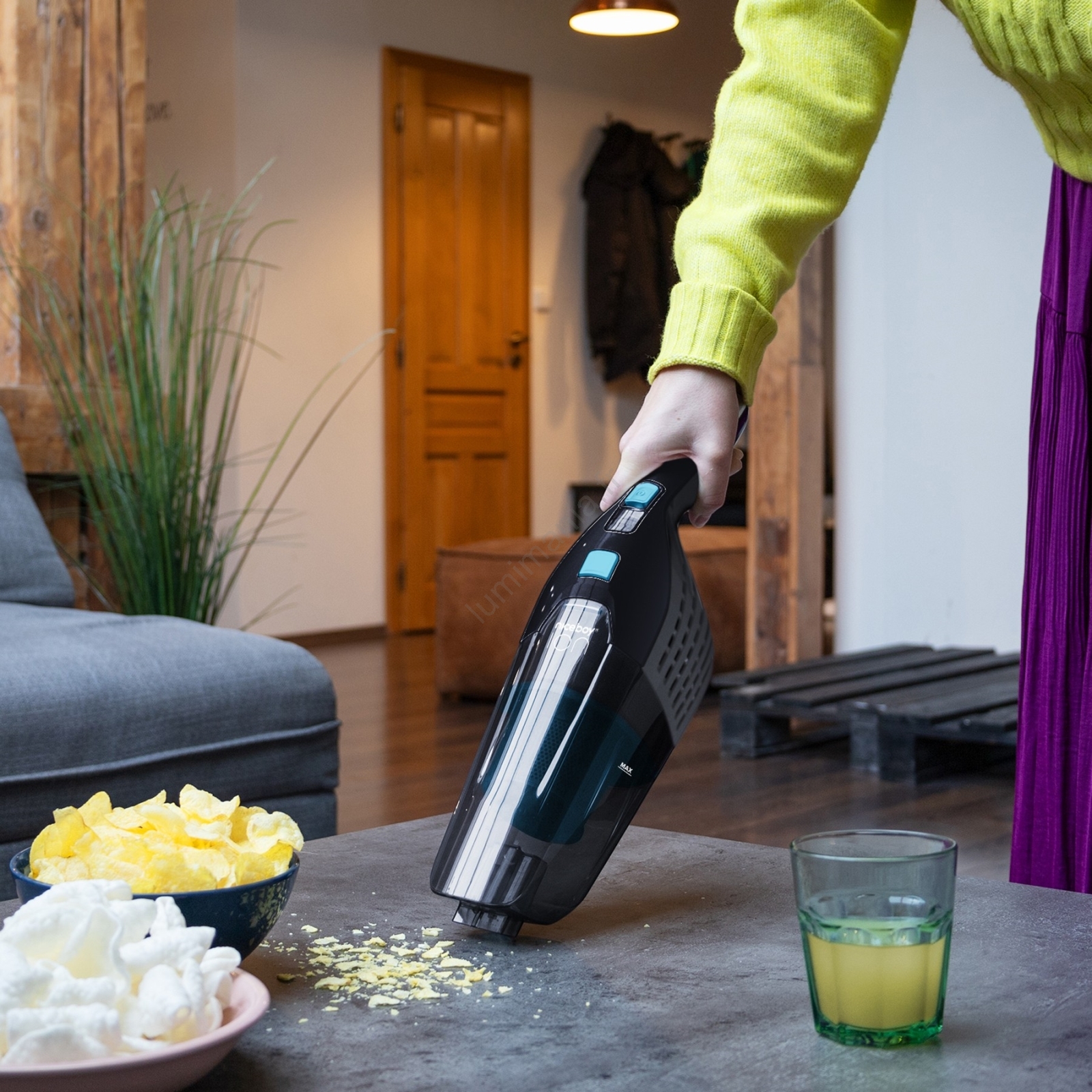 • L’aspirateur à main est idéal pour un nettoyage rapide des zones difficiles d’accès comme les meubles, le plan de travail de la cuisine ou l’intérieur de la voiture.