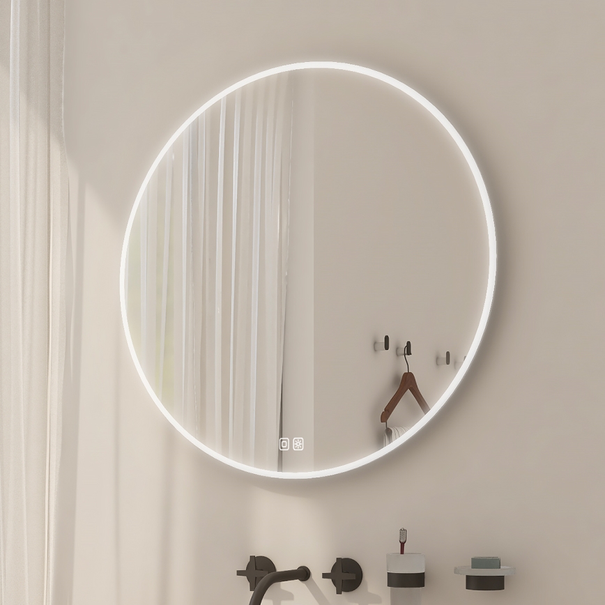 • Miroir mural au design soigné, équipé d'un éclairage LED.