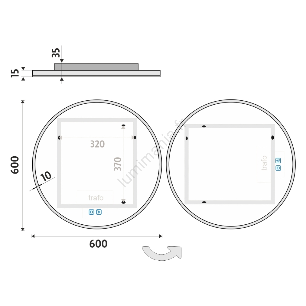 • Le miroir dispose d'une fonction mémoire qui enregistre le dernier réglage de l'éclairage et de la température de couleur.