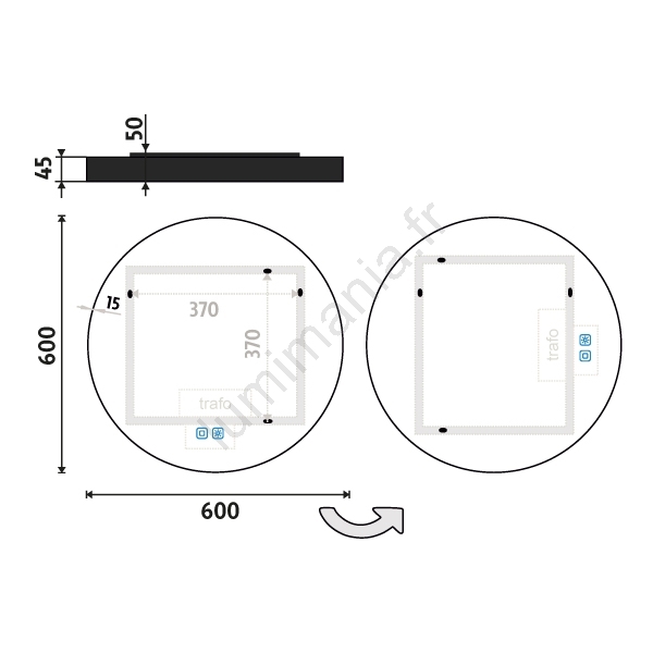 • Le miroir dispose également d'une fonction mémoire qui conserve le dernier réglage de l'éclairage et de la température de couleur.