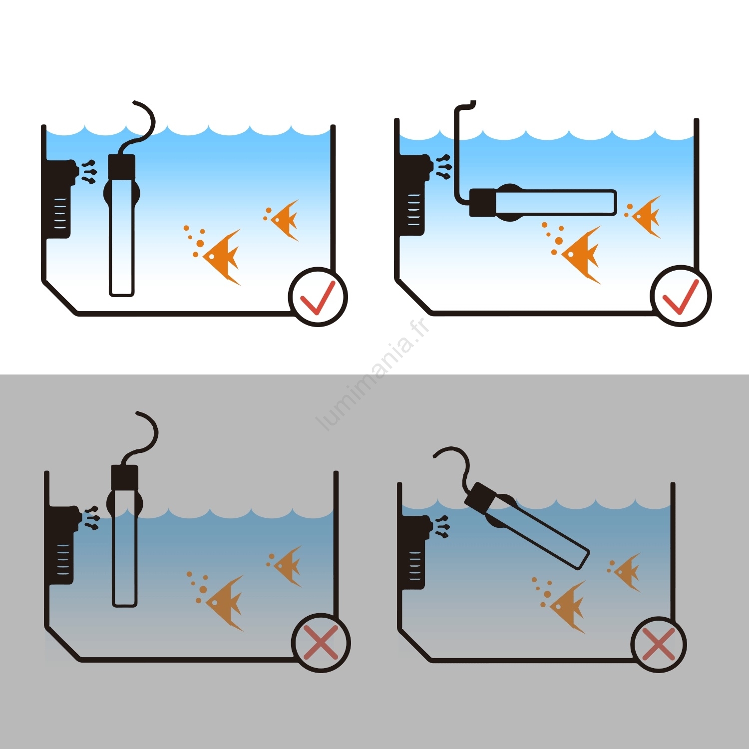 • Design compact, discret dans l'aquarium et facile à dissimuler derrière les décorations.