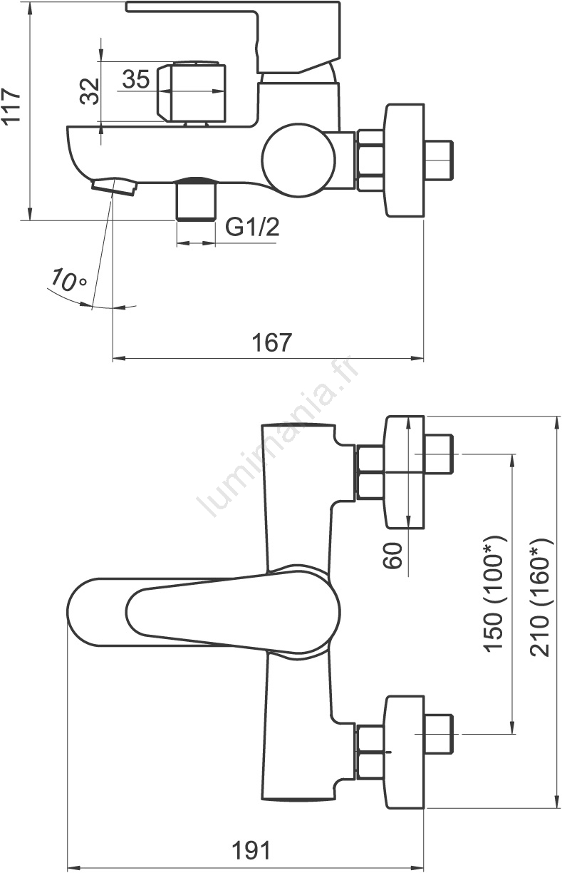 • Élément de commande : cartouche céramique 35 mm.