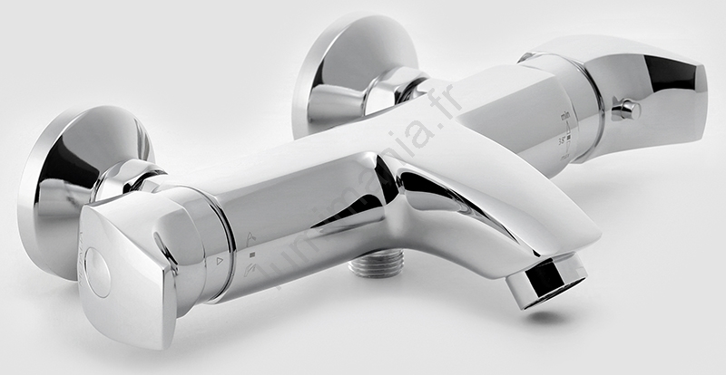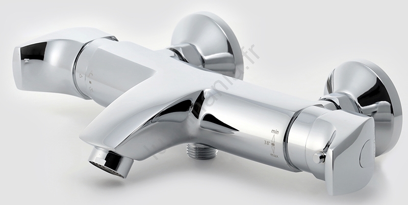 • Thermostat à droite, réglage du débit à gauche.