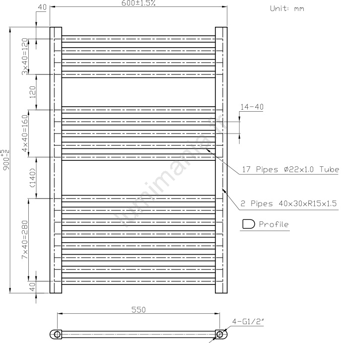 Novaservis - Radiateur sèche-serviettes droit pour salle de bains 478W/230V 90x60 cm, blanc