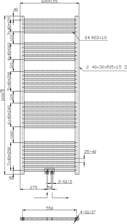 Novaservis - Radiateur sèche-serviettes en échelle droit 836W/230V 160x60 cm, noir